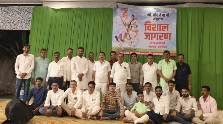 जळगाव – श्री वीर तेजाजी महाराजांचा द्वितीय वर्ष जागरण उत्सव रविवार, १० ऑगस्ट रोजी जळगावात मोठ्या उत्साहात आणि श्रद्धेने संपन्न झाला. आदित्य लॉन, लोकमत पेपरसमोरील परिसर, एमआयडीसी येथे झालेल्या या भव्य कार्यक्रमात सुप्रसिद्ध गायक श्री नवीन दाधीच (चिंटू जी) यांनी आपल्या मधुर वाणीने तेजाजी महाराजांची स्तुतिगीते, भजने आणि जागरणाची पारंपरिक सादरीकरणे सादर करून वातावरण भक्तिमय केले.