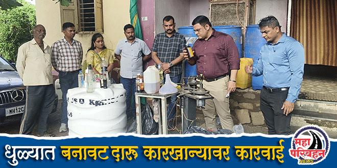 धुळ्यातील सहजीवन नगरात संशयीत गणेश निकम हा मयत वडील नारायण बाजीराव निकम यांच्या घरात देशी-विदेशी दारू बनवण्याचा मिनी कारखाना चालवत असल्याची माहिती धुळे गुन्हे शाखेचे वरिष्ठ पोलिस निरीक्षक श्रीराम पवार यांना मिळाल्यानंतर त्यांनी पथकाला कारवाईचे निर्देश दिले. मंगळवार, 26 रोजी पथकाने छापेमारी करीत 90 हजार रुपये किंमतीचे स्पिरीट, 31 हजार 500 रुपये किंमतीचे स्पिरीट, 15 हजार रुपये किंमतीचे बाटली पॅक करण्याचे मशीन तसेच रॉयल स्टॅग, ऑफिसर चॉईस, एमडी आदी प्रकारच्या विविध दारूंच्या बॉटल्यांचे सुमारे पाच हजारांवर बुच तसेच पाण्याची टाकी व अन्य साहित्य मिळून एक लाख 68 हजार 90 रुपयांचा मुद्देमाल जप्त करण्यात आला.
