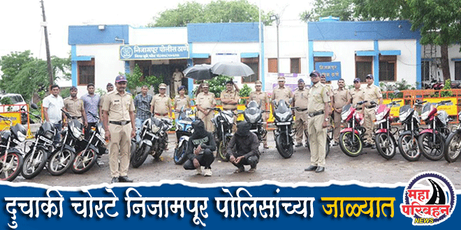 18 two-wheelers stolen in Nandurbar district including Dhule: Thieves caught by Nizampur police निजामपूर, ता.धुळे (28 ऑगस्ट 2025) : निजामपूर पोलिसांनी दुचाकी चोरी करणार्या अट्टल आरोपींच्या मुसक्या आवळल्या असून त्यांच्याकडून नऊ लाख 20 हजार रुपये किंमतीच्या 18 दुचाकी जप्त केल्या आहेत. आमोदे-आगरपाडा रस्त्यावरील जोगीदेव डोंगराजवळ ही कारवाई करण्यात आली. अनिल अभिमन भिल (पवार, साळवे, ता.शिंदखेडा) व शांताराम मन्साराम मोरे (वेहेरगाव, ता.साक्री) अशी अटकेतील आरोपींची नावे आहेत. आरोपींना न्यायालयाने पाच दिवसांची पोलिस कोठडी सुनावली आहे.