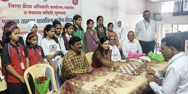 प्रसंगी प्रतिष्ठा महिला मंडळाच्या अध्यक्षा रजनी सावकारे यांच्या.हस्ते चेस बोर्ड वरती सोंगट्यांची चाल चालुन करण्यात आले. अध्यक्षस्थानी शालेय पोषण आहार अधीक्षक बी.डी.धाडी हे होते. प्रसंगी महाराष्ट्र राज्य क्रीडा व शारीरिक शिक्षण शिक्षक महासंघाचे राज्य उपाध्यक्ष तथा जिल्हाध्यक्ष, भुसावळ तालुका क्रीडा समन्वयक डॉ.प्रदीप साखरे, मेघश्याम शिंदे यांच्यासह सर्व क्रीडा शिक्षक खेळाडू प्रशिक्षक पंच उपस्थित होते