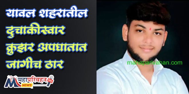 Biker killed in collision with speeding cruiser: Mourning in Yaval यावल (1 सप्टेंबर 2025) : भरधाव क्रुझर व दुचाकीत धडक होवून या अपघातात यावल शहरातील दुचाकीस्वार जागीच ठार झाला.हा अपघात यावल तालुक्यातील साकळी गावाजवळून चुंचाळे फाट्याकडे जाणार्या रस्त्यावरील वळणावरील भारत तोलकाट्यासमोर सोमवारी दुपारी तीन वाजेच्या सुमारास घडला. मोहित रवींद्र कुवर (22, रा.धनगर वाडा, यावल) असे मयत तरुणाचे नाव ाहे.