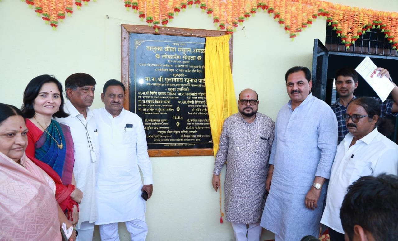 अमळनेर तालुका क्रीडा संकुलाच्या लोकार्पण सोहळ्याचे आयोजन आज पालकमंत्री गुलाबराव पाटील यांच्या हस्ते अत्यंत उत्साहात करण्यात आले. यावेळी सहकार मंत्री बाळासाहेब पाटील, आ.अनिल पाटील, माजी आ. साहेबराव पाटील, जिल्हा क्रीडा अधिकारी रविंद्र नाईक, अमळनेर प्रांताधिकारी नितीन मुंडावरे, तहसीलदार तसेच अनेक मान्यवर उपस्थित होते.