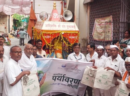 जळगाव (प्रतिनिधी ) – जळगाव ते क्षेत्र पंढरपूर या मार्गावर निघालेल्या श्री संत मुक्ताबाई राम पालखी सोहळ्यात सर्व भक्तांना गांधी रिसर्च फाउंडेशन आणि महाराष्ट्र प्रदूषण नियंत्रण मंडळ यांच्यामार्फत कापडी पिशव्यांचे वाटप करण्यात आले. प्लास्टिकच करूया अंत.. या थीमवर आधारित जनजागृती करत श्रीराम मंदिर संस्थानचे गादीपती ह.भ.प. मंगेश महाराज यांच्याहस्ते दिंडीत सहभागी भाविकांना कापडी पिशवी वाटप करण्यात आली.