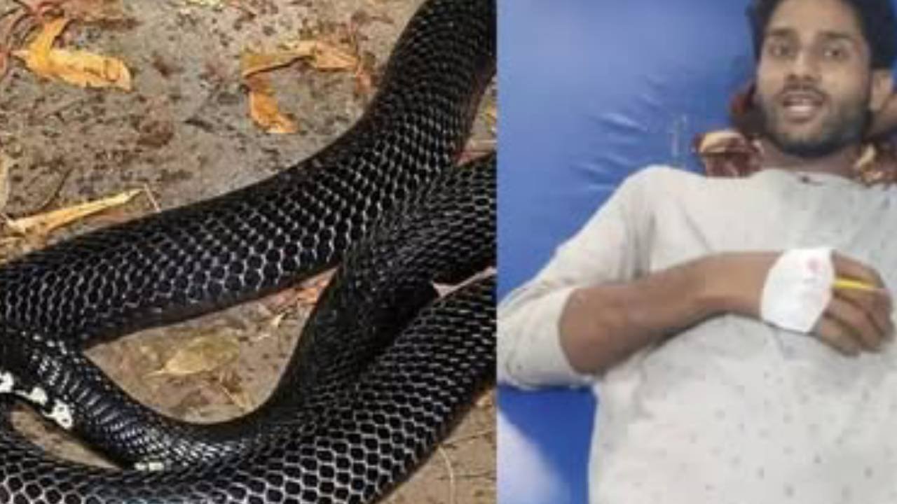 भोपाळ: सर्पदंशानं देशात वर्षाकाठी ५० हजारांहून अधिक जणांचा मृत्यू होतो. विषारी सापांच्या दंशामुळे ग्रामीण भागात अनेकांचे मृत्यू होतात. यातील बहुतांश मृत्यू वेळेत उपचार न मिळाल्यानं होतात. पण मध्य प्रदेशात एक चक्रावून टाकणारी घटना घडली आहे. विषारी सापानं एका २५ वर्षीय तरुणाला दंश केला. त्यामुळे तरुण घाबरला. पण पुढच्या ५ मिनिटांत विषारी सापाचा तडफडून शेवट झाला. या घटनेची चर्चा सध्या पंचक्रोशीत सुरु आहे. सर्पदंश झालेल्या तरुणावर सध्या जिल्हा रुग्णालयात उपचार सुरु आहेत. त्याच्या प्रकृतीला आता कोणताही धोका नसल्याची माहिती डॉक्टरांनी दिली.