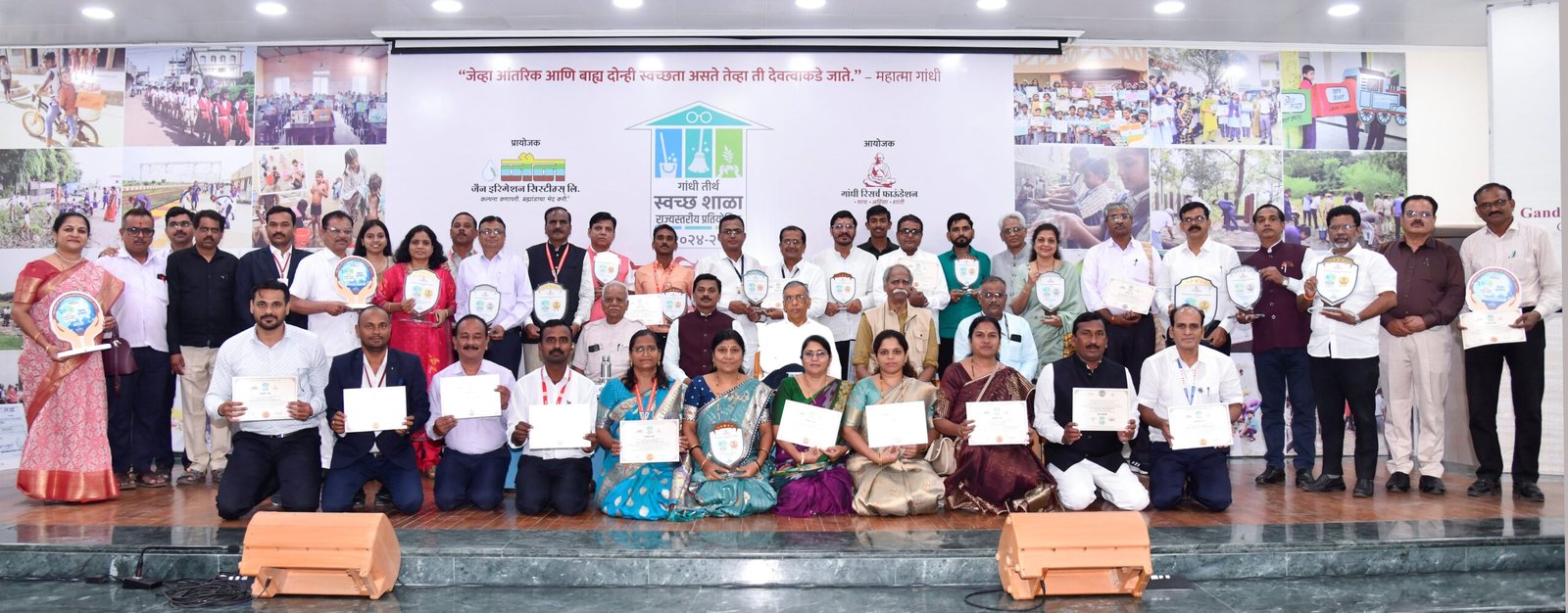 जैन हिल्सवरील गांधी तीर्थच्या कस्तुरबा सभागृहात झालेल्या पारितोषिक वितरण सोहळ्यामध्ये राज्यातून प्रथम पुरस्कार गोविंदराव निकम माध्यमिक व उच्च माध्यमिक विद्यालय सावर्डे ता. चिपळूण जि. रत्नागिरी शाळेस प्राप्त झाला. त्यांना रुपये एक लाखाचे रोख पारितोषिक व सन्मानचिन्ह देण्यात आले. ग्रामिण स्तरावर स्वा. सै. पी. डी. थेपडे माध्यमिक व उच्च माध्यमिक विद्यालय म्हसावद द्वितीय तर जि. प. प्रशाला गणोरी ता. फुलंब्री व शंकर विद्यालय तळवेल जि. अमरावती यांना तृतीय क्रमांक प्राप्त झाला. तालुकास्तरावर श्री छत्रपती शिवाजी हायस्कूल व ज्युनिअर कॉलेज सगरोळी, जि. नांदेड, द्वितीय तर जनता माध्यमिक व उच्च माध्यमिक विद्यालय येडशी जि. धाराशीवला तृतीय पुरस्कार प्राप्त झाले. जिल्हा स्तरावरील द्वितीय क्रमांक श्रीमती हि. गो. श्रॉफ हायस्कूल व कनिष्ठ महाविद्यालयाला तर तृतीय क्रमांक नंदिनीबाई वामनराव मुलींचे विद्यालय व ज्युनिअर कॉलेज जळगावला प्राप्त झाला. उत्तेजनार्थ म्हणून शासकीय इंग्रजी माध्यम निवासी आश्रम शाळा मुंढेगाव व तात्यासाहेब पी. सी. पाटील माध्यमिक आश्रम शाळा तळबंत तांडा यांना गौरविण्यात आले. जिल्हा, तालुका व ग्रामीण स्तरावरील प्रथम, द्वितीय व तृतीय पुरस्कारप्राप्त शाळांना रुपये एकावन्न हजार, एकतीस हजार व एकवीस हजार रोख व सन्मानचिन्ह देण्यात आलीत. तर उत्तेजनार्थसाठी रुपये अकरा हजार रोख पारितोषिक देण्यात आलीत. तसेच अंतिम मूल्यांकनासाठी पात्र ठरलेल्या शाळांनासुद्धा विशेष पुरस्काराने सन्मानित केले.