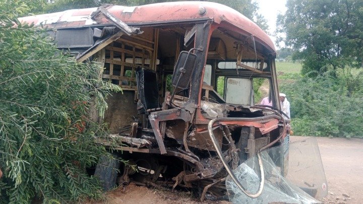 भरधाव वेगाने धावणारे डंपर हे अनेकदा अपघातांना कारणीभूत ठरत असतात. आज मुक्ताईनगर तालुक्यात गौण खनीज वाहून नेणाऱ्या अशाच एका डंपरने बसला धडक दिली. ही बस मुक्ताईनगरवरून निघून मलकापूर येथे जात होते. डंपरच्या धडकेत बसच्या पुढील भागाचा अक्षरश: चुराडा झाल्याचे दिसून आले.